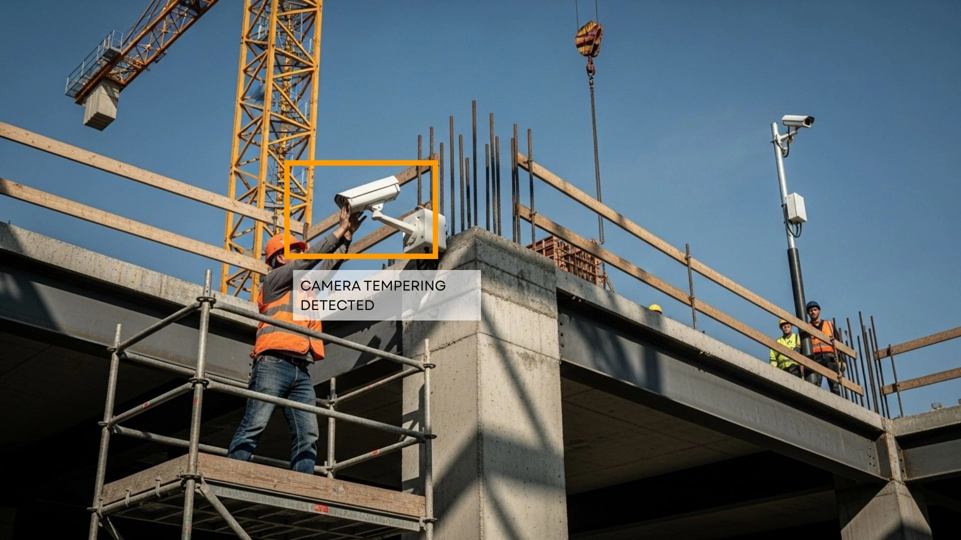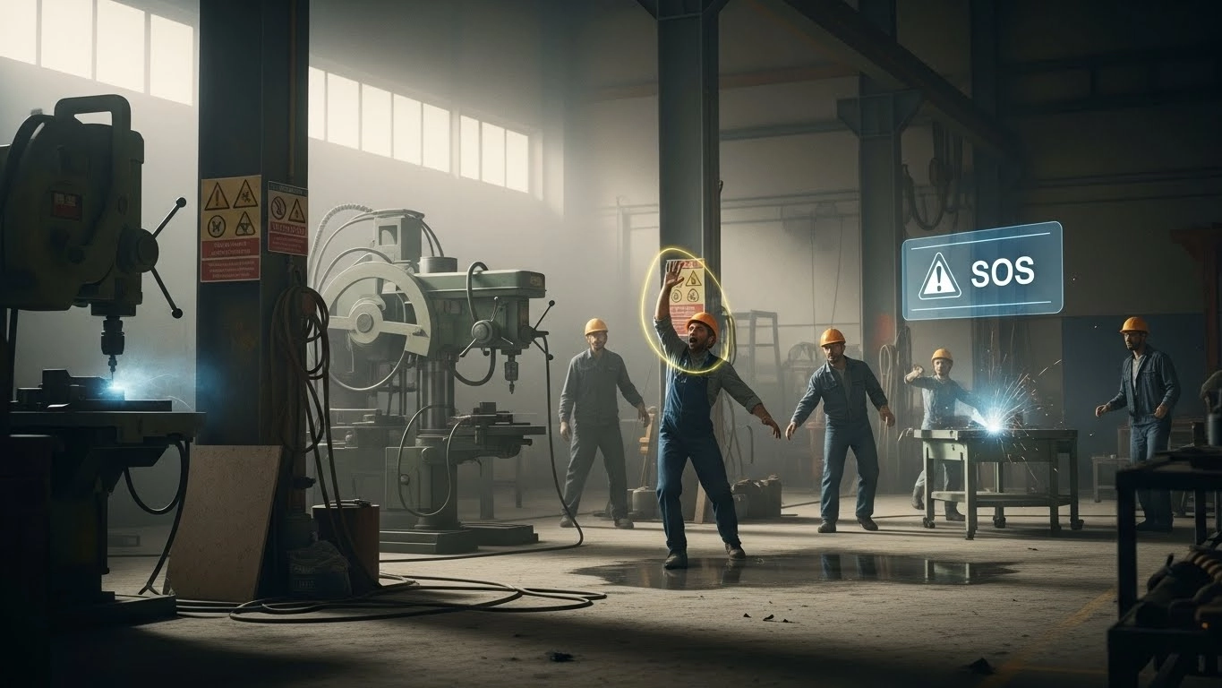 Ebits Eye monitors PPE compliance, restricted areas, camera tampering, and panic gestures for workplace safety.