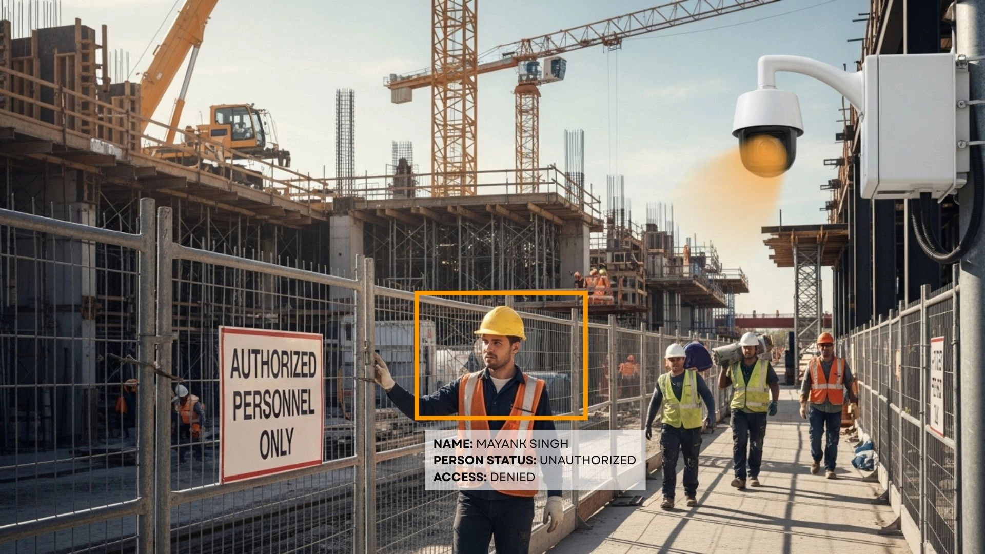 Smart AI cameras are installed across your facility to capture real-time video of critical areas, entrances, and work zones.