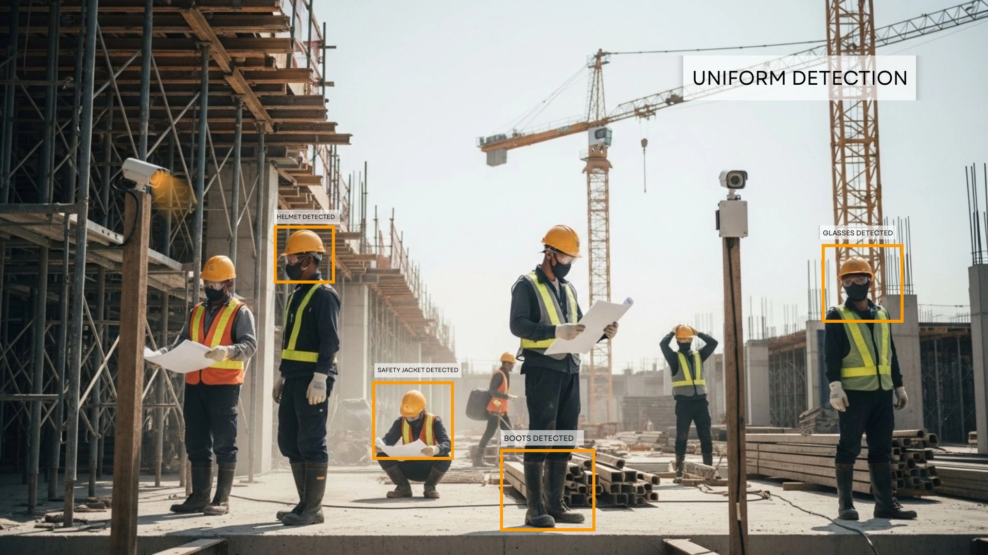Smart AI cameras are installed across your facility to capture real-time video of critical areas, entrances, and work zones.