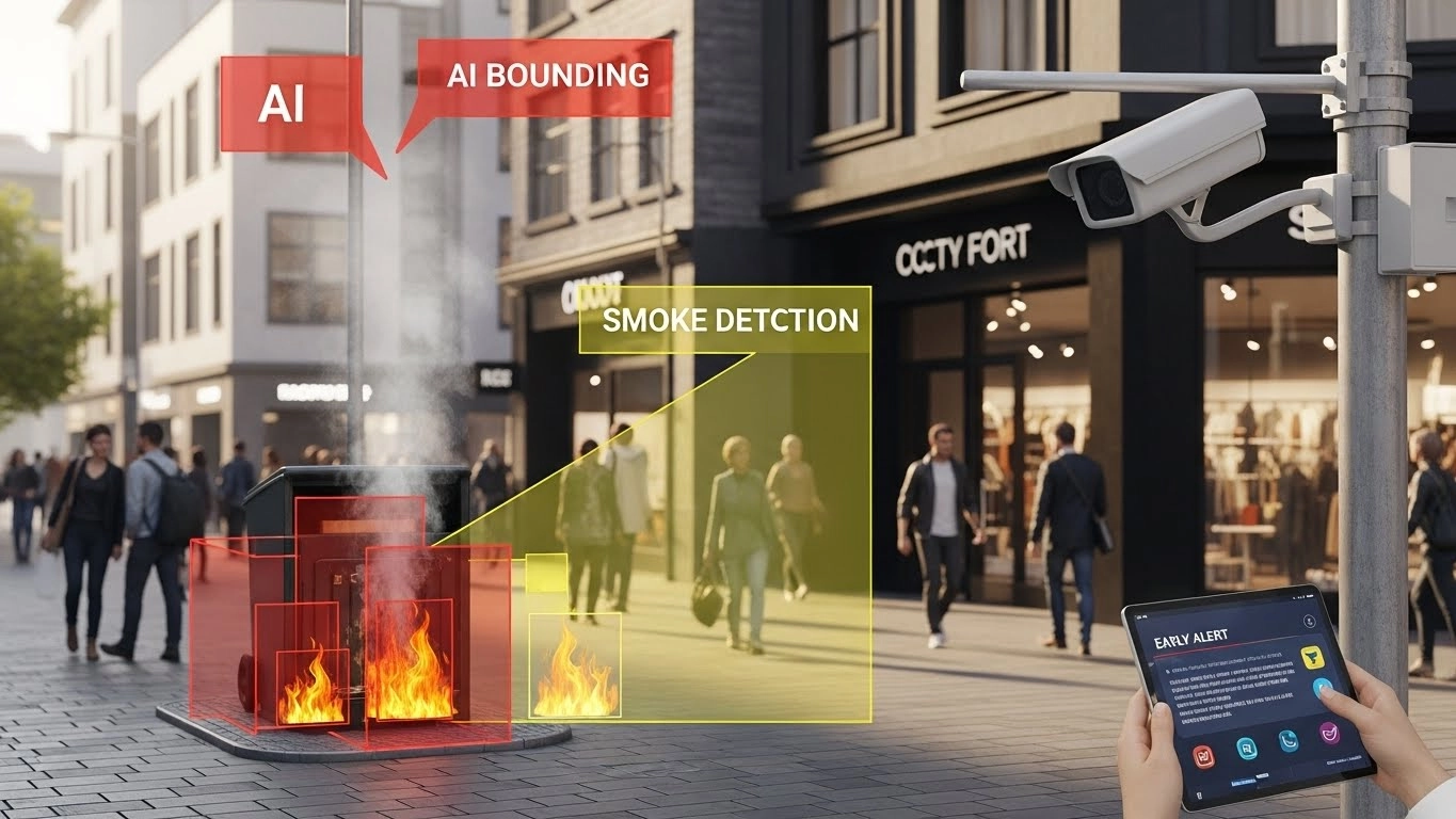 AI detects flames and smoke within seconds, enabling rapid emergency dispatch to prevent major damage.